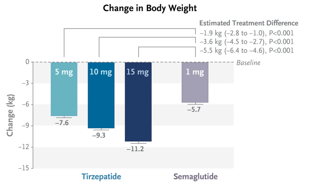 この試験では、マンジャロ(5~15mg)とオゼンピック(1mg)が比較されました。